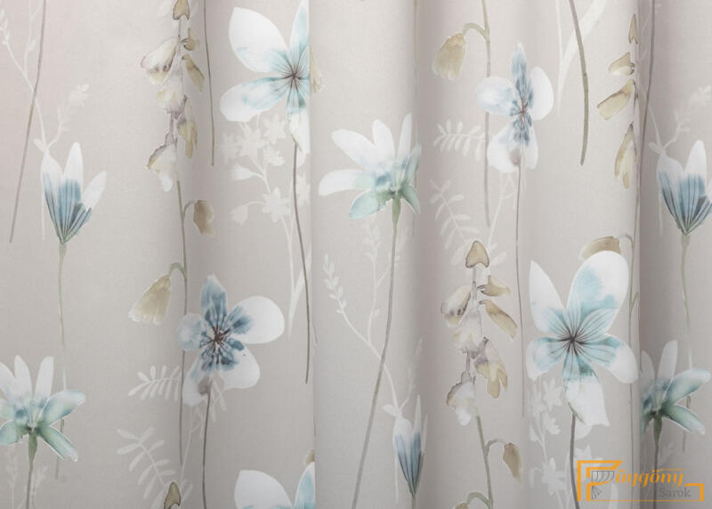 (3 szín) GOUDA virágos dim out függöny halványkék színű virágokkal