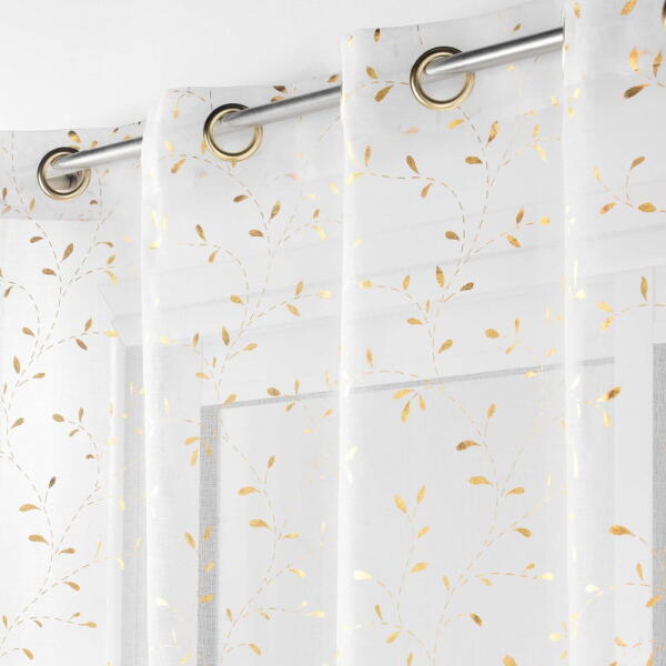 Fehér-aranyszínű átlátszó függöny 140x240 cm Floressia – douceur d'intérieur
