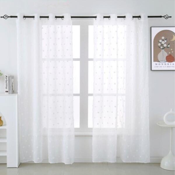 Ez a gyönyörű sötétítő függöny készlet  elegánsan kiemeli az ablak terét, ráadásul  ellenállhatatlanul megfizethető áron.  Teremtsen meleg és hangulatos környezetet otthonában. Az elegáns és puha  fehér Brisa függöny diszkrét pontozott mintával, 140x250 cm méretű. Ez a függöny ideális választás mindenkinek, aki romantikát és frissességet szeretne vinni otthonába. Kiváló minőségű poliészterből készült, amely hosszú élettartamot és könnyű kezelhetőséget biztosít. Könnyűségének köszönhetően elegendő fényt enged be  otthonába, kellemes és világos hangulatot teremtve minden helyiségben. A Brisa függöny tökéletes nappaliba, hálószobába vagy étkezőbe. Fehér színe és finom pontozott mintája minden helyiséget feldob. Akár a modern, akár a skandináv vagy a klasszikus stílust részesíti előnyben, a Brisa függöny nagyszerű választás. Ez a függöny hangulatot és eleganciát kölcsönöz a belső térnek, amit Ön és vendégei értékelni fognak.  SZETT TARTALMA: 2 db fehér BRISA függöny pontozott mintával 140x250 cm