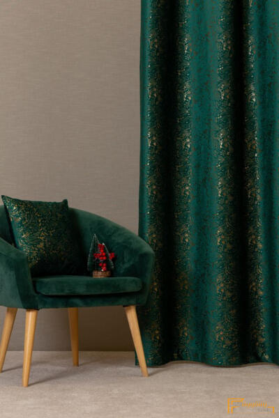 Karácsonyi ágak dekor függöny - Smaragd