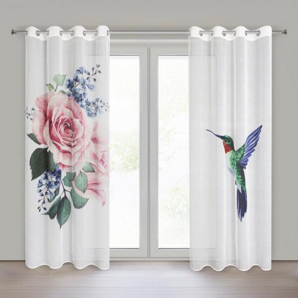 Takoy Sötétítő függöny LIA 2 db-os szett könnyű etaminból rózsa és kolibri motívummal 140 x 260 cm