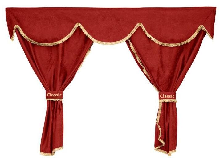 Teherautó fülke függöny szett, univerzális, MAN-kompatibilis, piros színű