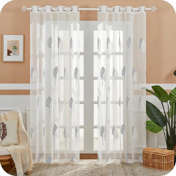 Voile Függöny Hímzett Levélmintával, Vászonhatású, 245x140 cm, 2 darab, Fehér (B08C9WZTK4)